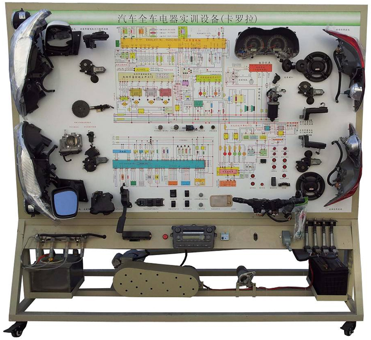 汽車電氣設備實訓室。汽車電器設備實訓室包含有汽車燈光系統、車載網絡系統、全車電器系統、汽車啟動系統、汽車空調系統、全車線路試驗臺、等實訓教學設備。該實訓室可以承擔《汽車構造》、《汽車電器設備》、《汽車電控系統》、《汽車檢測與診斷》等課程的實踐教學任務。可以用于研究、分析全車電器系統、燈光系統、儀表系統等電器設備的電路及功能。利用這些系統進行實踐教學,使學生熟悉汽車電器的結構和工作原理,掌握各個系統的基本組成電路,掌握主要電路的檢測方法和系統的故障特征,從而具有一定的檢測和調校能力。