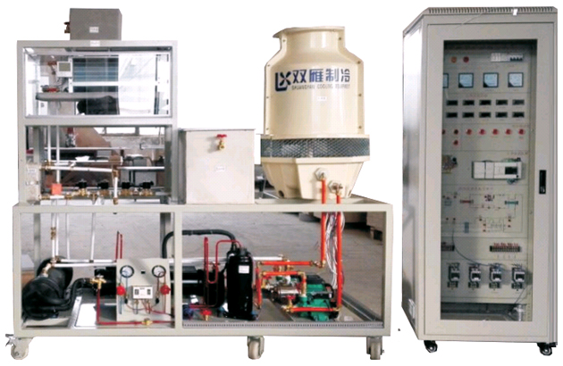 蓄冷空調制冷技術實訓裝置是利用夜間低谷負荷電力制冰儲存在蓄冰裝置中,白天融冰將所儲存冷量釋放出來,減少電網高峰時段空調用電負荷及空調系統裝機容量,它代表著當今世界中央空調的發展方向。該實訓裝置是根據《蓄冷空調系統原理、工程設計及應用》、《蓄能空調技術及其發展》等課程的實踐教學而開發設計的新型實訓設備。整個裝置采用直接蒸發制冰系統,系統主要由制冷機組、蓄冰裝置、空調末端裝置、空調循環水泵、乙二醇泵、載冷劑(乙烯乙二醇水溶液)等組成。適合各院校空調工程專業、建筑環境與設備工程等專業相關課程的實訓教學。