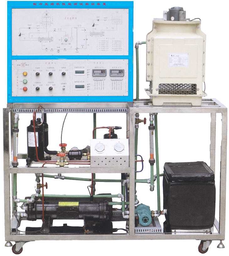 "制冷壓縮機性能測試實訓設備"采用蒸汽壓縮式制冷循環系統,配備全封閉式制冷壓縮機、冷凝器、蒸發器等制冷系統真實部件,并設有智能溫度調節儀、流量計、壓力表、電壓表、電流表等測量儀表。不但能開設制冷壓縮機性能參數的測定實訓,還能進行制冷循環基本原理的演示實訓。適用于職業院校制冷專業相關課程的教學實訓。