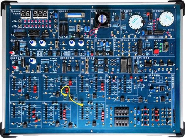 實驗平臺中具有各種典型信號源(階躍信號、方波信號、斜波信號、拋物波信號、正弦波信號)、模擬對象(八組運放單元)、實際對象(步進電機、直流電機、溫度控制)等單元。各單元之間的電路連接、單元內的元件選擇都可以多種方式來操作,從而提高了實驗效率。系統允許用戶根據教學內容來自行設計、開發相應的實驗項目,并支持大型的課程設計和畢業設計。