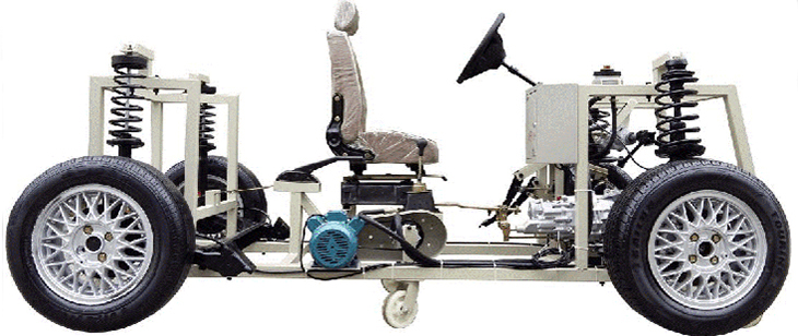 包括汽車前后懸掛系、轉向系、傳動系、手動變速器及掛檔機構、制動系等系統、安裝腳輪的可移動式臺架等組成。