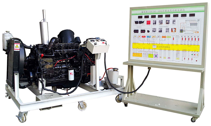 柴油發動機總成、組合儀表、發動機控制單元、散熱系統(水箱、風扇、上下水管)、排氣系統、進氣系統(進氣軟管、空氣濾清器總成)、原車電路原理圖板及檢測端子面板、蓄電池、電源總開關、燃油箱、油水分離器、油門踏板裝置、可移動機臺架、臺架高溫及轉動等部位加裝防護裝置等。