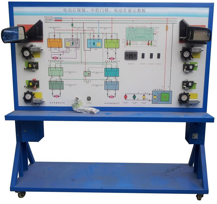 該設備采用 東風天錦 汽車車門控制系統(包括電動窗、中控門鎖系統)實物為基礎,充分展示汽車電動窗、中控門鎖系統的組成結構和工作過程。