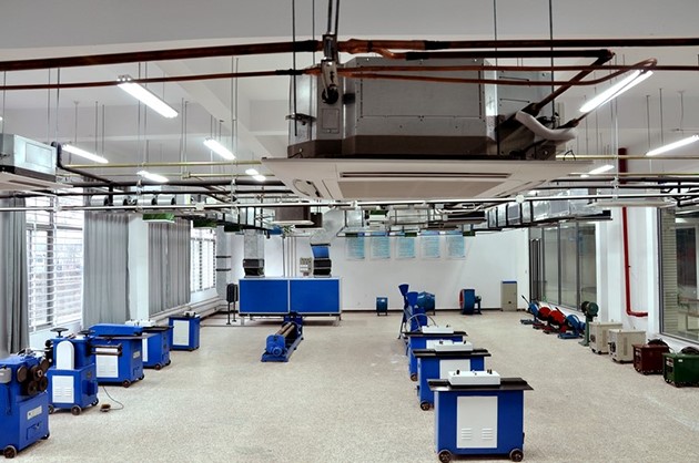 3.組合式空調機組、新風機組、風機盤管、冷卻塔、風機、消聲器、多聯機、滾剪機、咬口機、卷圓機、合縫機等主要設備,組成一次回風式空調系統、新風加風機盤管空調系統、排風系統、多聯機空調系統等四個系統,可以承擔組合式空調機組安裝、冷卻塔安裝、新風機組安裝、風機盤管安裝、風機安裝、多聯機安裝、風口安裝、風管制作等8個實訓項目。