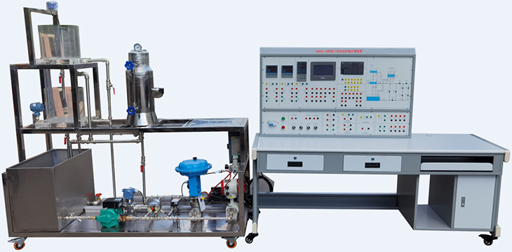 系統對象包含有:不銹鋼蓄水箱,有機玻璃圓筒型水箱,電阻爐,電動執行機構,氣動執行機構,空氣壓縮機,閥門及管道。